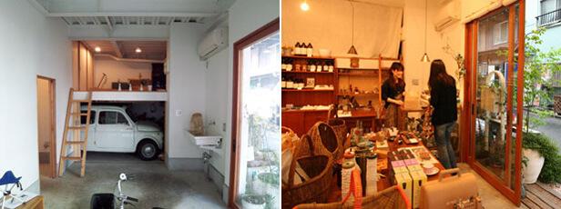 左:募集時はこんな感じ。もと花屋さん、その後帽子屋さんとして使われていました。右:現在はこう。ベースは何も変わっていない。