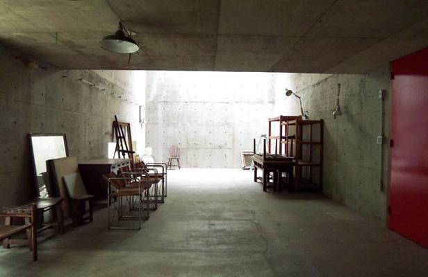 何といってもまずその天高。メインのアトリエ部分はなんと5メートル近い高さがある。そして驚くのは室内を照らしているのがほぼ自然光だけ、ということだ。天然のスポットライト、そう言わんばかりにトップに空いた窓や横に空いた開口部から光が差し込んでいる。それだけで普通に明るい。どこか神々しくさえある。しかも電気の光と違う独特の柔らかい光なので、照らされたモノたちに優しいテクスチャーを与えている。
