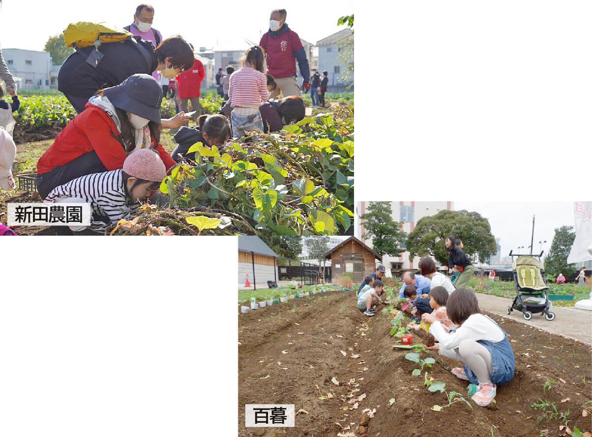 新田農園のプログラムでは秋の種まき&収穫体験を実施。大人も子どもも一緒に楽しめて、お土産付きです。