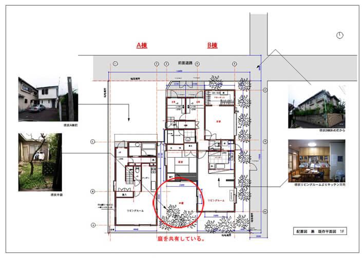 A棟B棟は並んで建っている建物ですが、元々建物の間に「中庭」を共有していました。たぶん、昔は隣同士、ご家族や親戚でお住まいだったのでしょう。