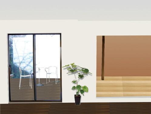 ウッドデッキをはることで、庭と建物内部がレベル差なく繋がり、リビングからみても、今より広く明るい空間に変わってみえます。