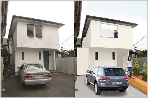 最後に外壁ですが、ちょっとくたびれ感のある外壁は、真っ白く塗り直してキレイに。それだけでもかなり明るい雰囲気になるはずです。(Open A事務所にて実証済)