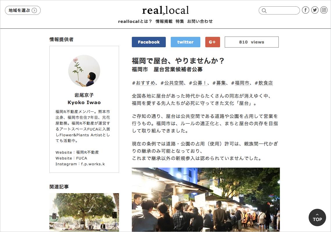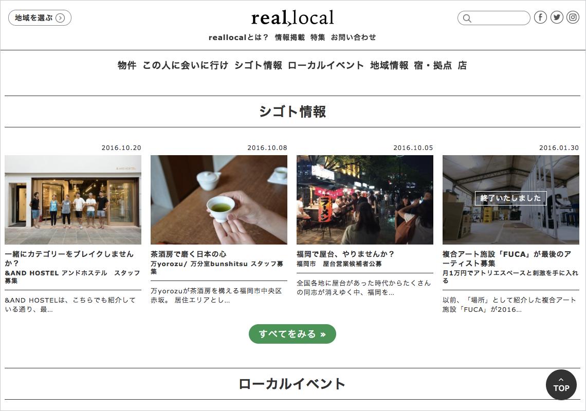 「real local」は、ローカルにおける求人や地域のイベント、魅力的な人などを紹介することで、地方都市での暮らしや働き方が見えてくるメディアを目指している。全国のR不動産で協力し合って2年前に立ち上げた。