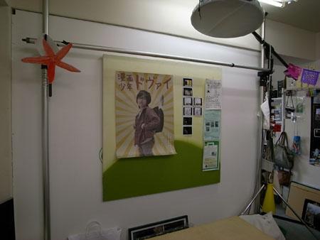 「ここでやれることは結構やってみたんです。記念写真のポートレートとか、この「漫画少年ドヴァイ展」のポスターもここで撮影したものです(上の写真)。でも、面白いことをやろうとしても、ここでできることの限界内ででしかできない、っていうことは感じていて。やりたいことをやる環境を整えるには、お金がかかるじゃないですか。偉くなってお金持ちになってから、やりたいことを自由にやるっていう考え方もあるけど、僕はゆっくりでもいいから少しずつ環境を整えていくやり方かなと。いろいろやってみたいことがあるし、アイデアもどんどん出てきているので、そろそろ次のステージに行きたいと考えているところです」