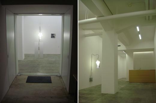 左:エントランス。右:以前、密買東京でも紹介した東恩納裕一さんのシャンデリアが展示されていました。(4月25日展示風景)